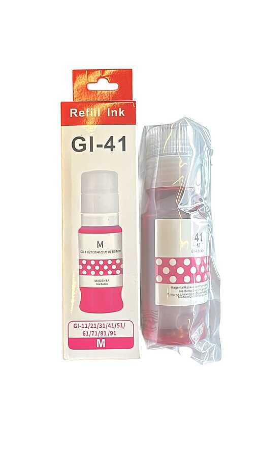 Canon GI-41 mürekkep, Canon Pixma G serisi yazıcılar için geliştirilmiş, yüksek baskı kalitesi ve ekonomik kullanım sunan orijinal ve muadil mürekkep çözümüdür. Canon GI41 mürekkep; siyah (Black) ve renkli (Cyan, Magenta, Yellow) seçenekleri ile hem ev kullanıcıları hem de ofisler için ideal performans sağlar.